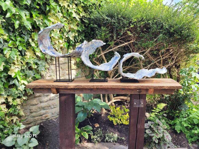 "Tidal Refraction" has been installed in their walled garden. The inspiration was to make three forms to represent 30 years.