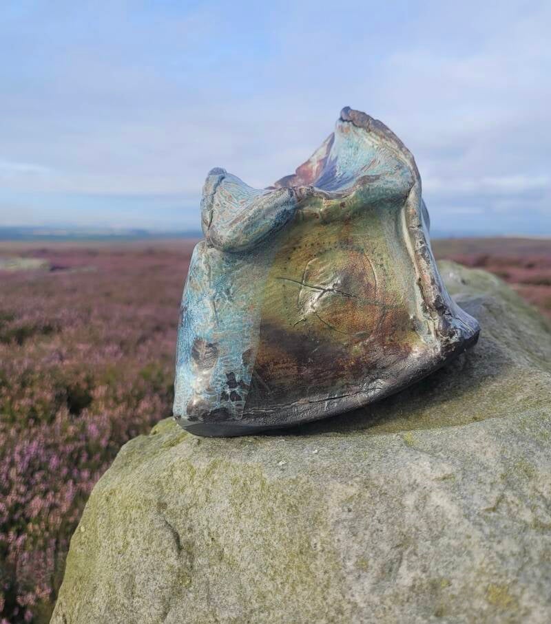 I believe my art is influenced by walking, the natural light, the weathered boulders and the rich edges and lines that come together and create each piece either from memory or a drawing which then translates through my hands to the clay. The rich landscape of The Cleveland Way, the North York Moors and coast have provided inspiration for each piece to develop. Taking the colours and forms from the walk I have made a series of pieces to reflect the landscape and to show the emotions crafted by our conversations and walks.