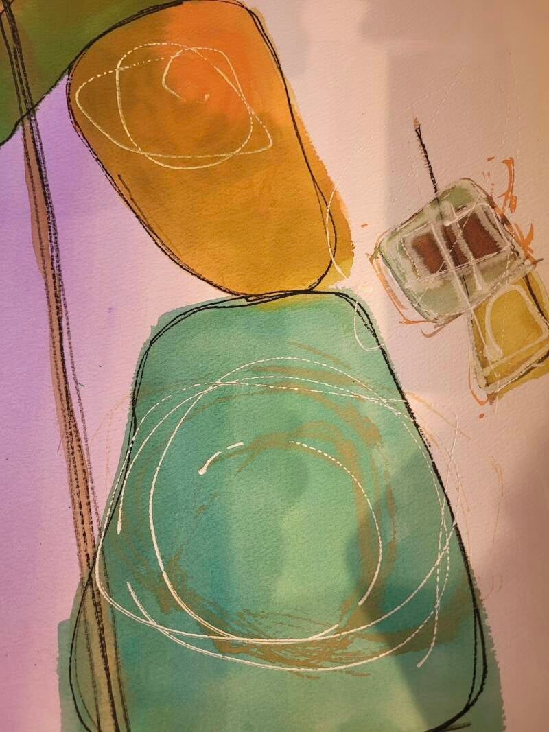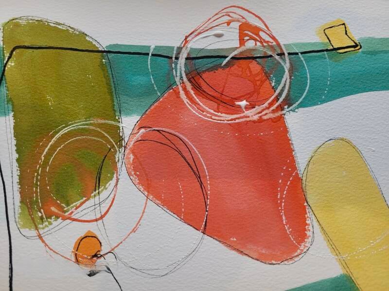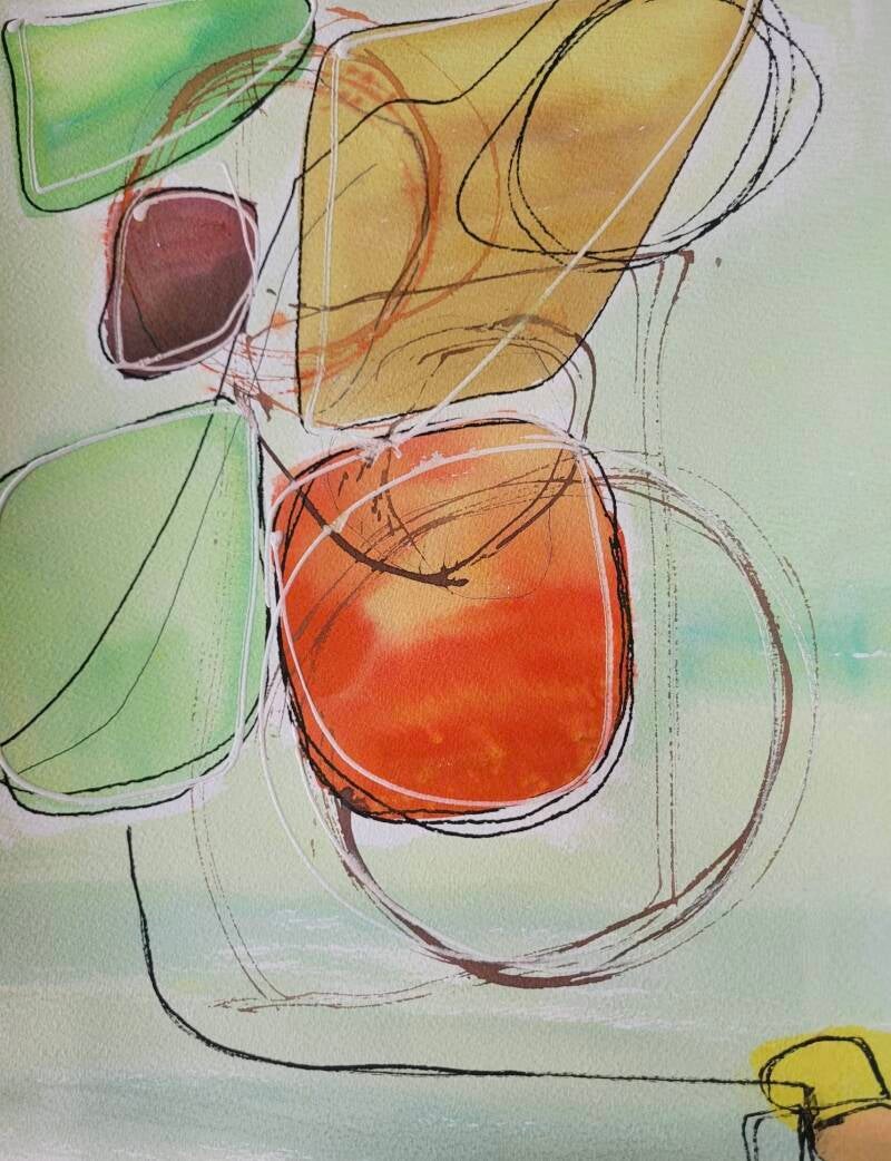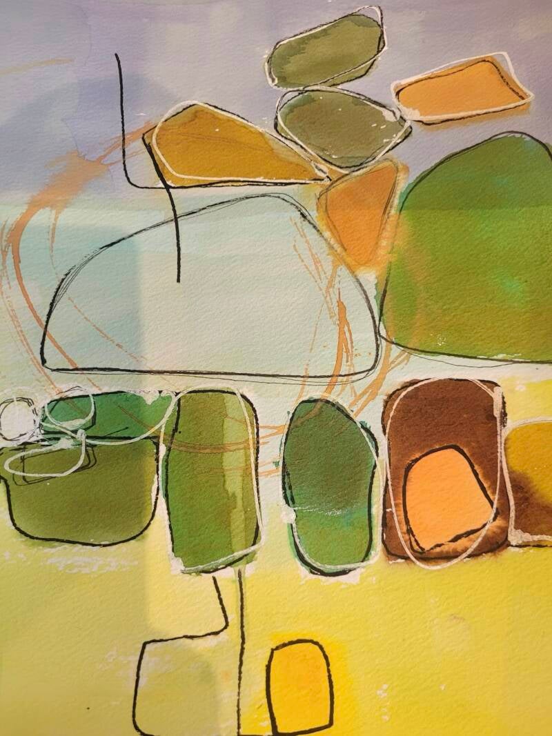 I capture the moment with abstract paintings that are immature, using marks and line to represent the view and the memory as a record to then apply to my ceramics in my studio.